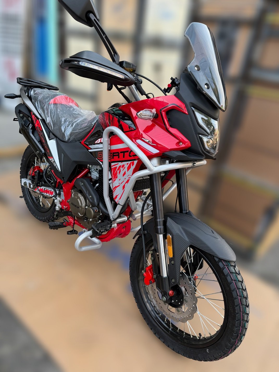 Esta es una moto todoterreno con la potencia que necesitas y la durabilidad que exige el camino, siendo perfecta para cualquier aventura. Tiene una estructura robusta con llantas tipo cross resistente para off-road, caminos irregulares y terrenos difíciles; sumado a un potente motor OHC Euro III de 250 cc, 4 válvulas y energía máxima de 24.14 HP 7500 Rpm.